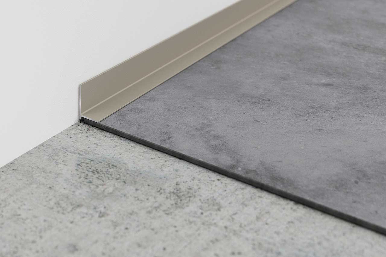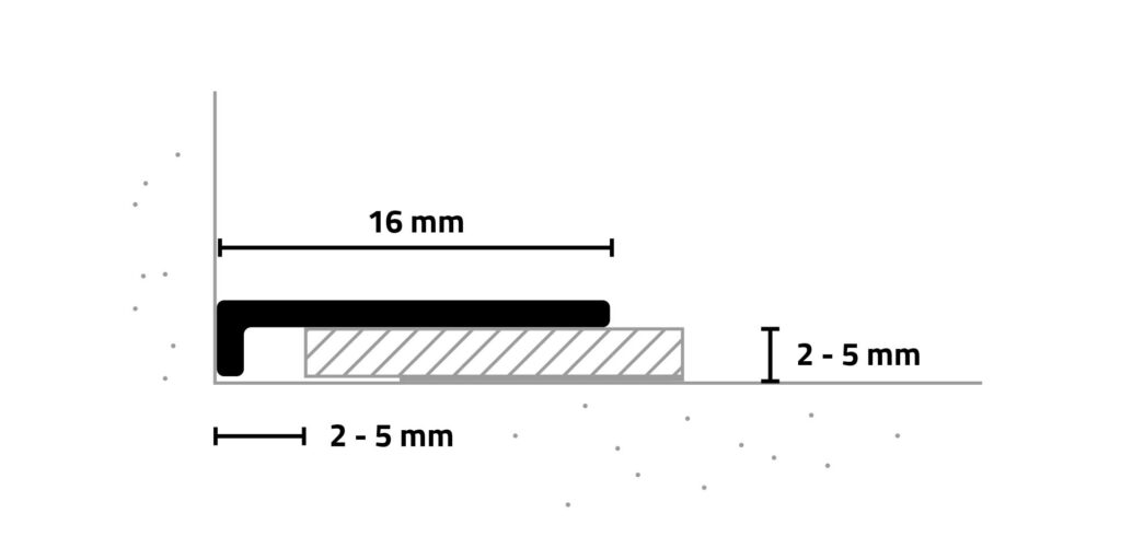 Zaključni profil minileiste AL16X2 omogoča diskreten in inovativen zaključek med talno oblogo in steno, oknom (okenskim okvirjem) ali stopnico – povsod, kjer je zaradi konstrukcijskih razlogov potrebno ohraniti povezovalne in dilatacijske rege.